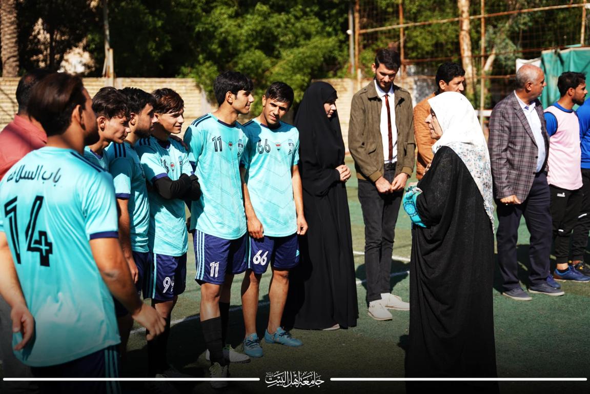 استقبل الاستاذ الدكتور حميد النجدي رئيس جامعة اهل البيت عليهم السلام والاستاذ الدكتور محسن القزويني مؤسس الجامعة وبحضور الاستاذ الدكتور رابحه الرماحي عميد كلية التربية البدنية وعلوم الرياضة في الجامعة وفد الاتحاد الفرعي لكرة القدم المصغرة ممثلا بالأستاذ حسنين ابو لحمه رئيس الاتحاد والاستاذه سناء هاتف مسؤولة الأنشطة النسوية والأستاذ ياسر الفضلي عضو الاتحاد لبحث سبل التعاون بين الجامعة والاتحاد من خلال دعم الاتحاد لأنشطة كلية التربية البدنية وعلوم الرياضه في الجامعة وإقامة المسابقات المختلفة للطلاب والطالبات وأقيمت بهذه المناسبة مباراة استعراضية بين منتخب المحافظة ومنتخب كلية التربية البدنية وعلوم الرياضة وتم بعد ذلك تكريم الاستاذ حسنين ابو لحمه والوفد المرافق له بدرع جامعة اهل البيت عليهم السلام ووسام الإبداع تقديرا لجهودهم المتميزة في الارتقاء بواقع رياضة كرة القدم المصغرة في محافظة كربلاء المقدسة
