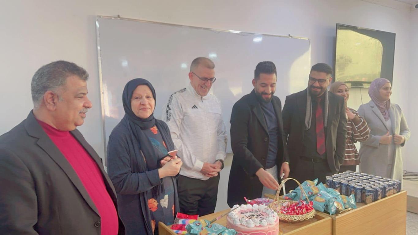 برعايةٍ كريمةٍ من السيد العميد الأستاذ الدكتور (رابحه الرماحي)، وضمن النشاطات الدورية لقسم الإرشاد النفسي والتوجيه التربوي بإحياء مناسبات أهل بيت النبوة (عليهم السلام)، نظّم القسم صباح اليوم الثلاثاء الموافق (٢٠٢٤/١/٢) احتفالاً بهيجاً بمناسبة ذكرىٰ ولادة سيدة نساء العالمين فاطمة الزهراء (عليها السلام)، والتي أقيمت في حدائق الجامعة بحضور العميد دكتور رابحه الرماحي وجمع من أساتذة وموظفي وطلبة الكلية ، إذ تضمنت فقرات الحفل البهيج القاء بعض الكلمات و والأشعار من قبل طلبة الكلية و تبادل التهاني والتبريكات بين الحاضرين وتوزيع الحلوى و الكيك والعصير بهذه المناسبة العطرة.